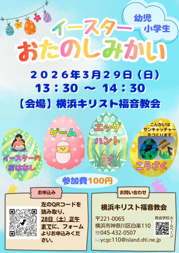 プログラム:イースターのお話し、ゲーム、エッグハント、工作
