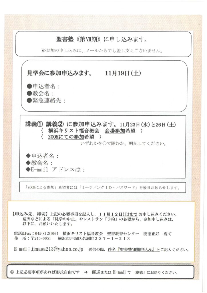 お申込みは教会までEメールあるいは電話にてご連絡くださるようお願いいたします。
